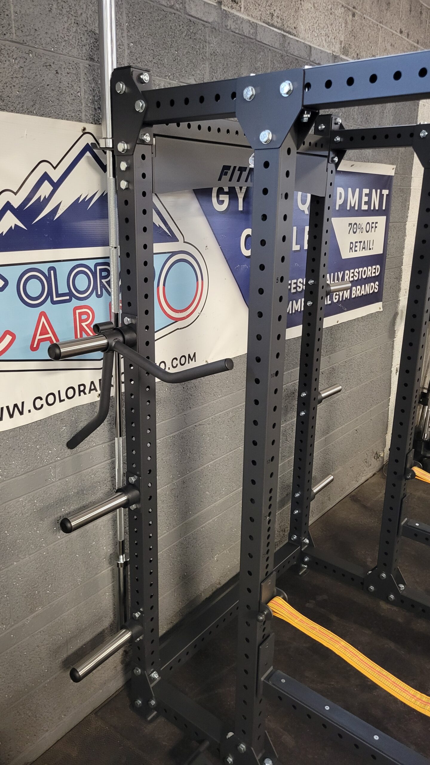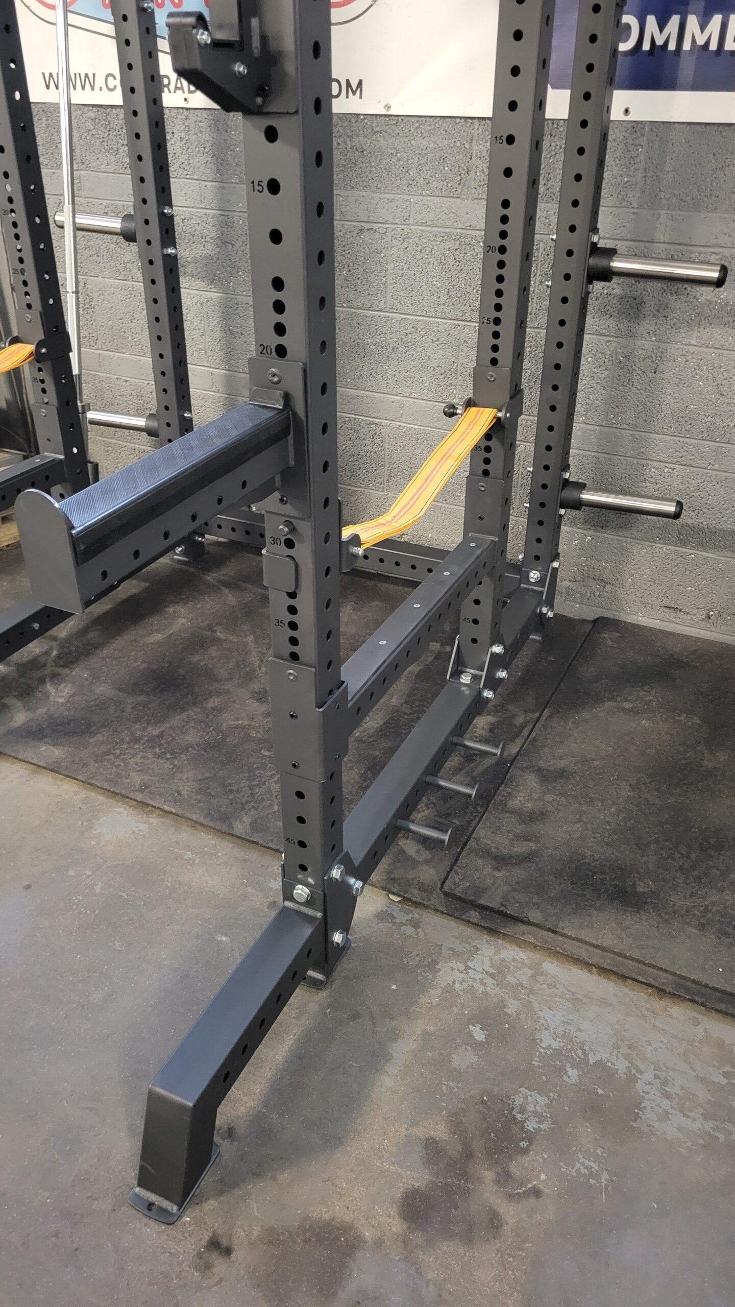 2 Olympic barbell storage holders on rear of rack