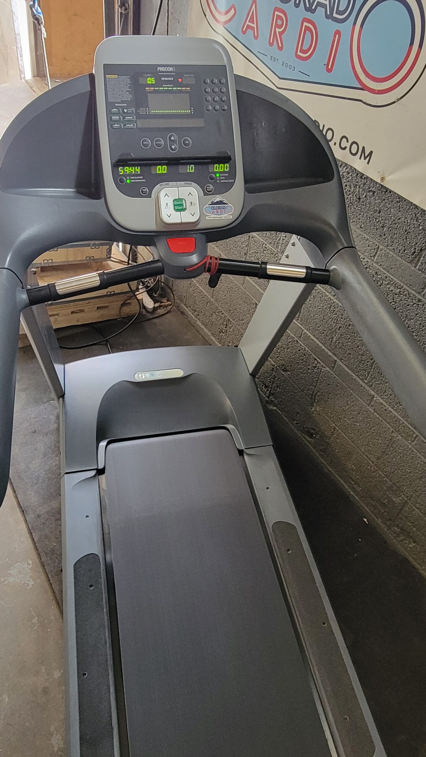 This unit has been professionally refurbished by Colorado Cardio, including the installation of a brand-new running belt and running deck for smooth performance and long-term reliability. The durable Slikdeck running surface requires no lubrication and can be flipped to extend the life of the deck.
